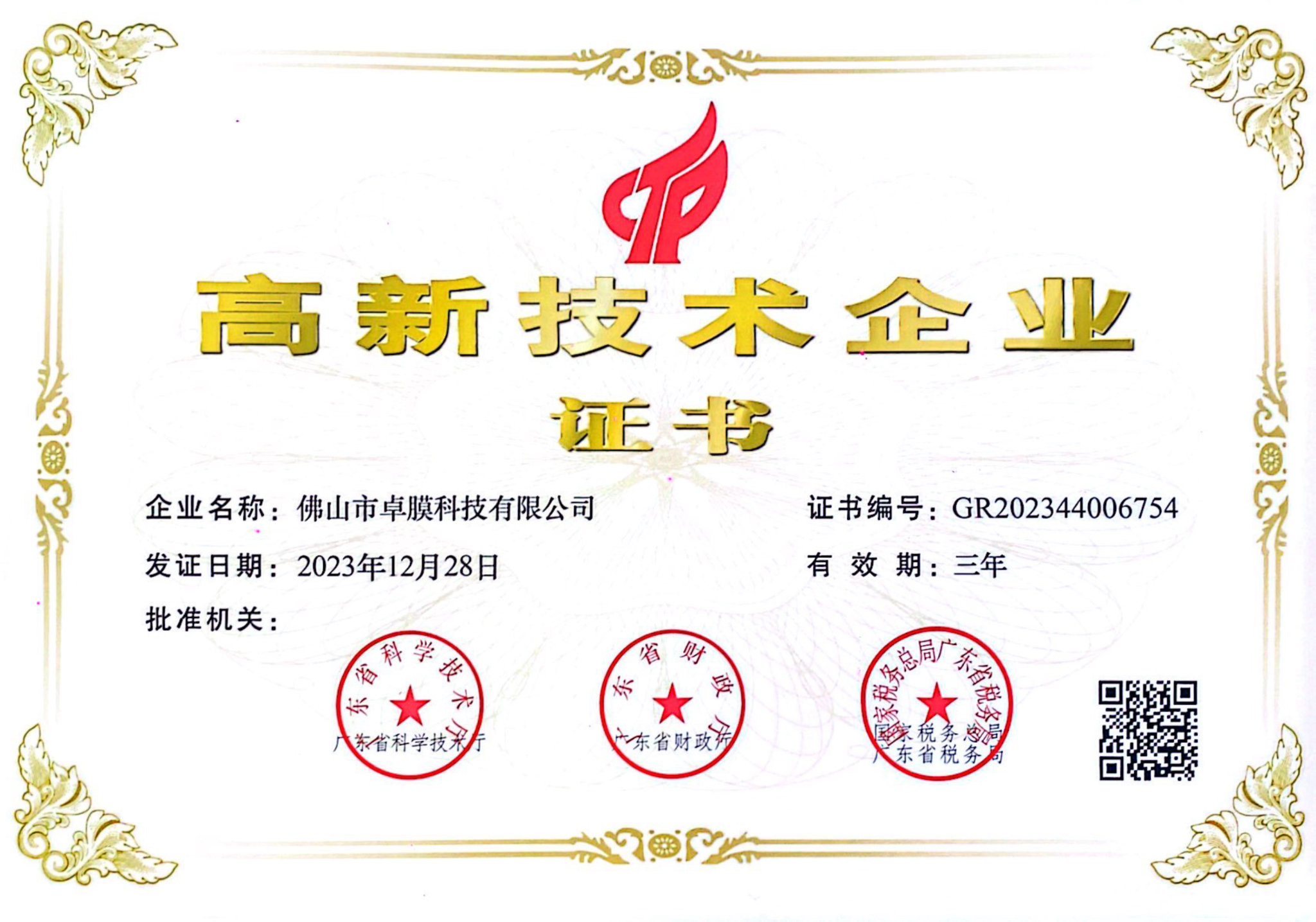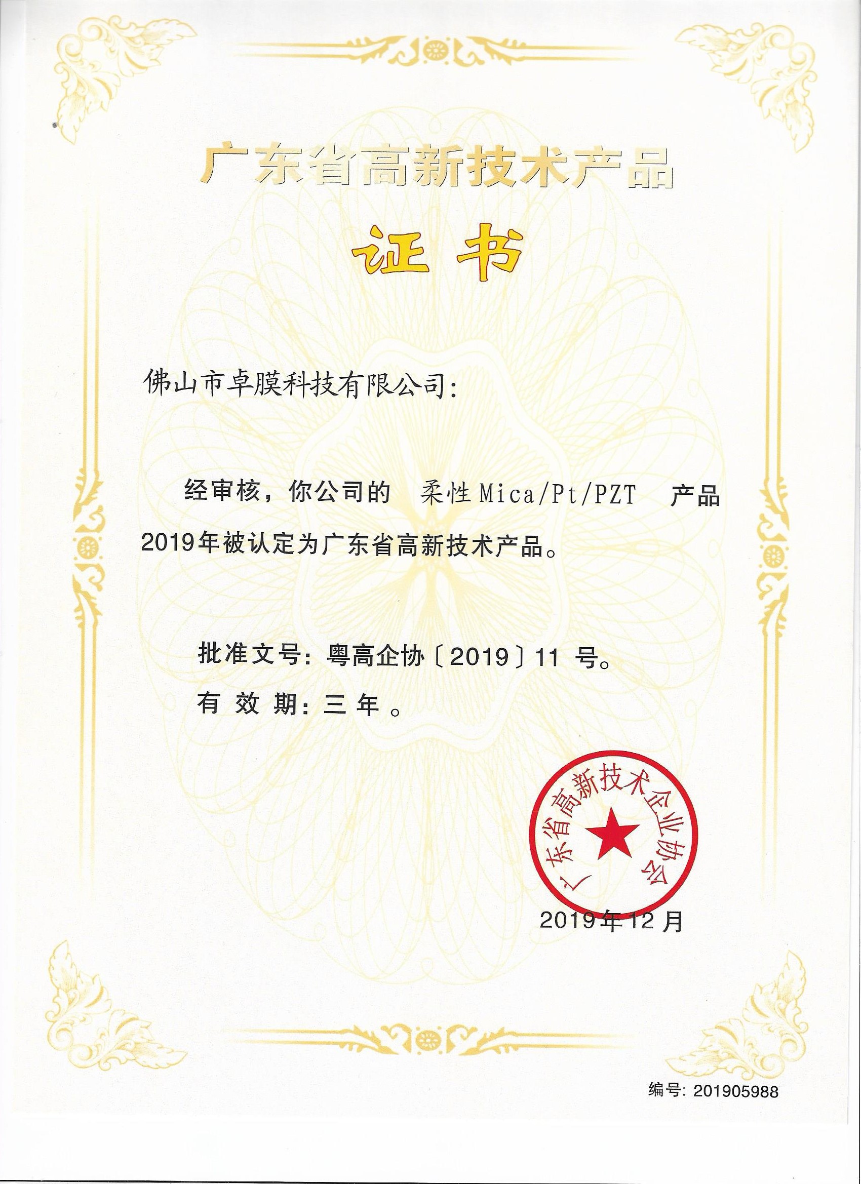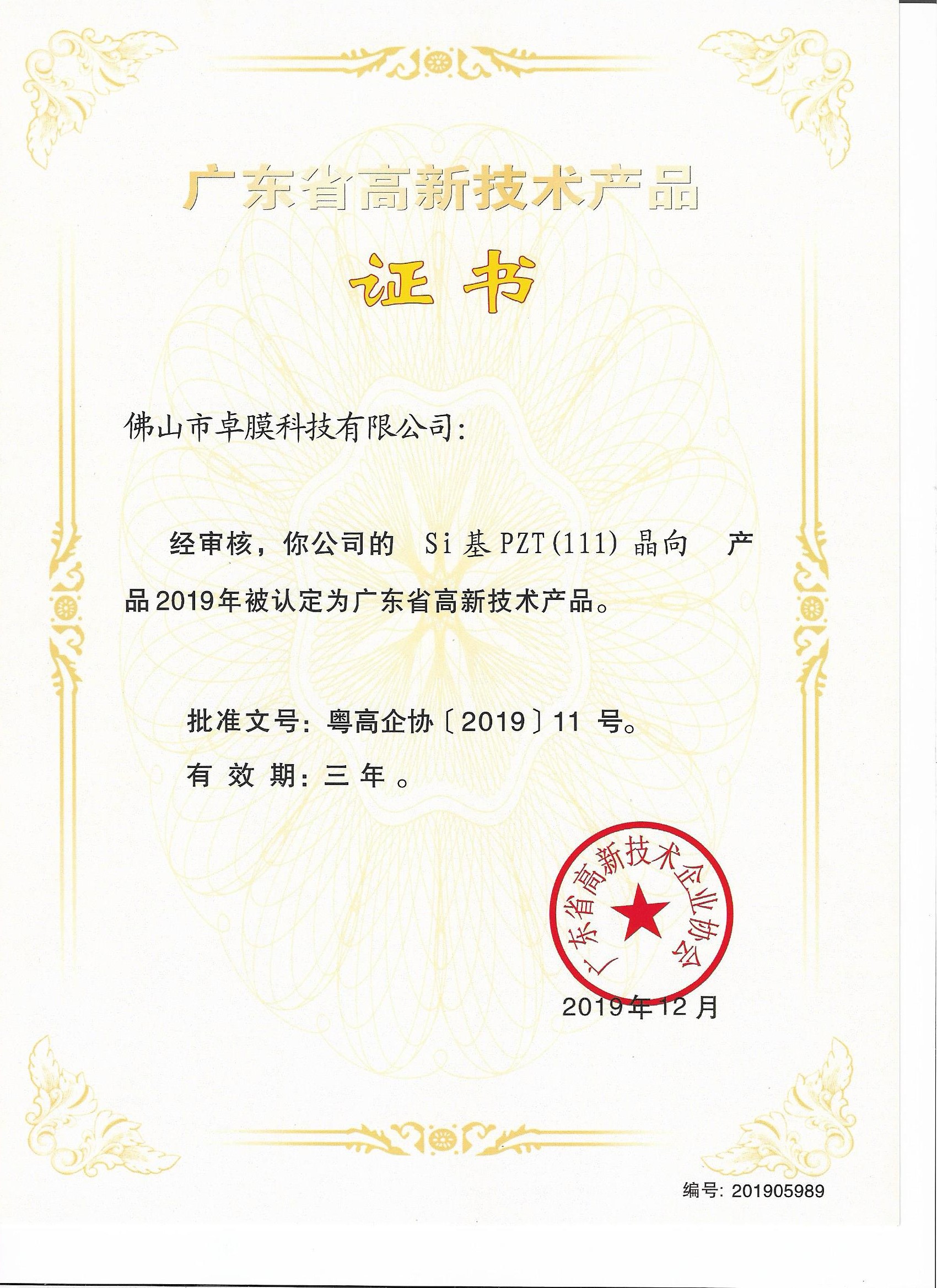 廣東高新技術(shù)產(chǎn)品證書(shū)